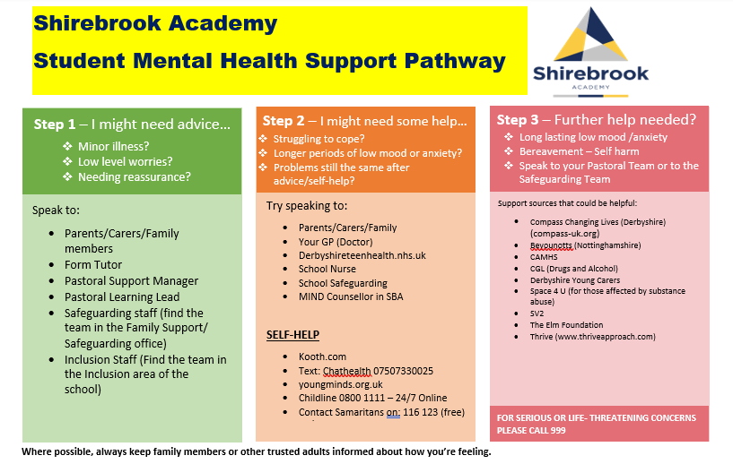 At Shirebrook Academy we want to give our young people the tools to develop positive mental health strategies by providing the necessary support to build and develop emotional resilience and to maintain good emotional health.